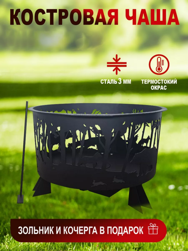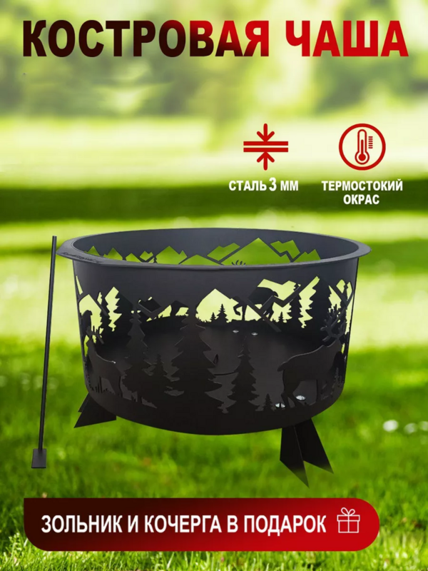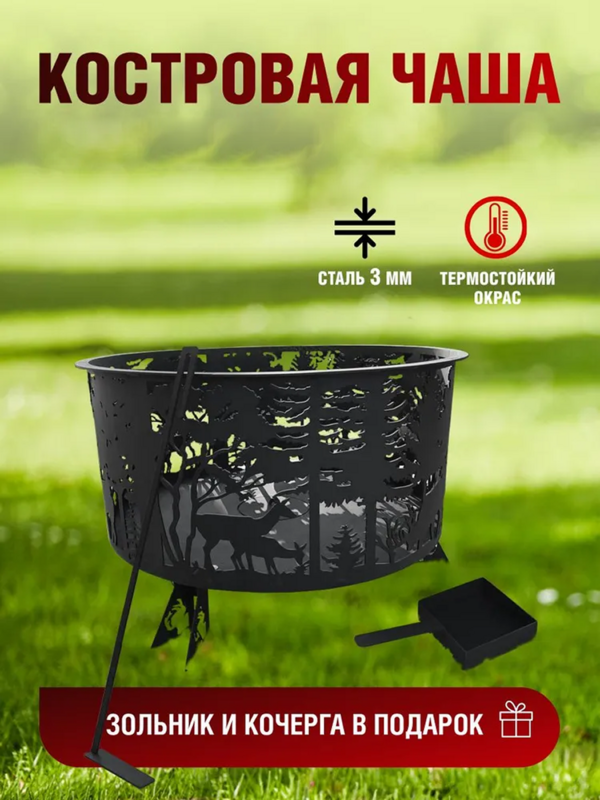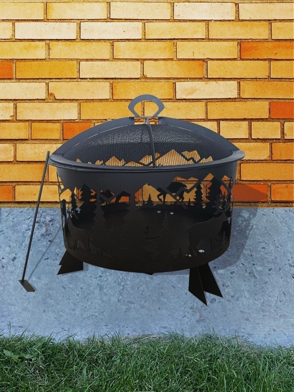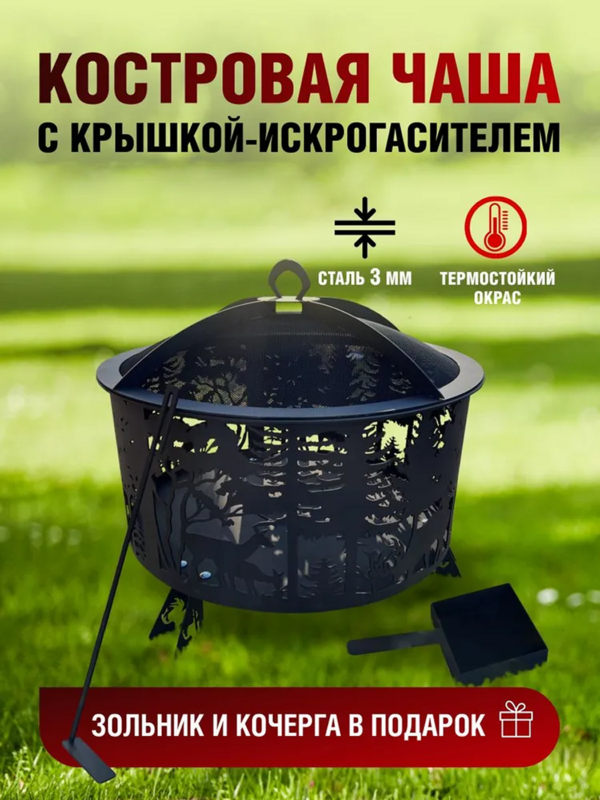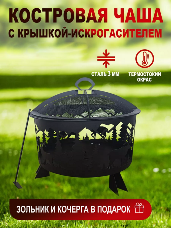Костровая чаша с крышкой, очаг "Олень" , 620*620*628, сталь 3 мм