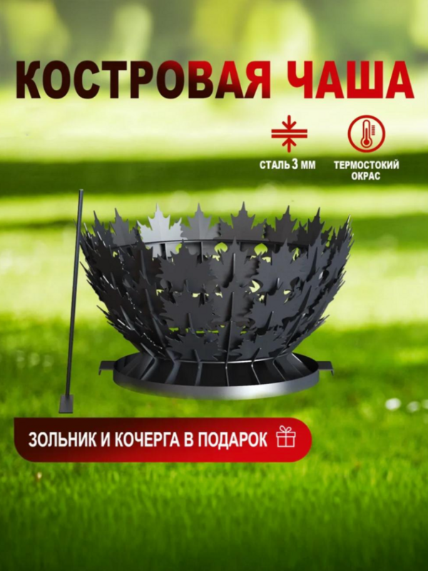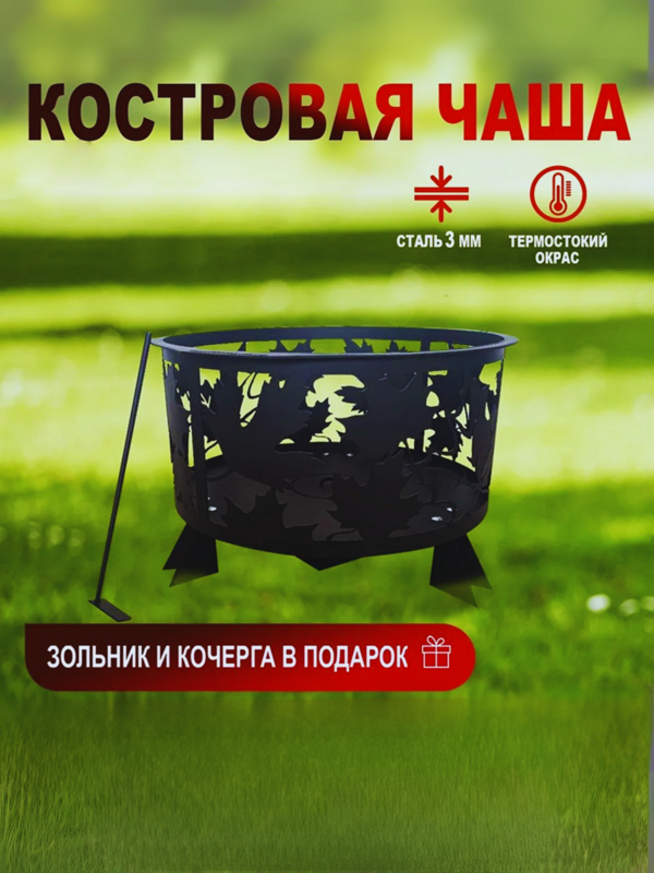 Костровая чаша, очаг "Клен", 690*690*380, сталь 3 мм