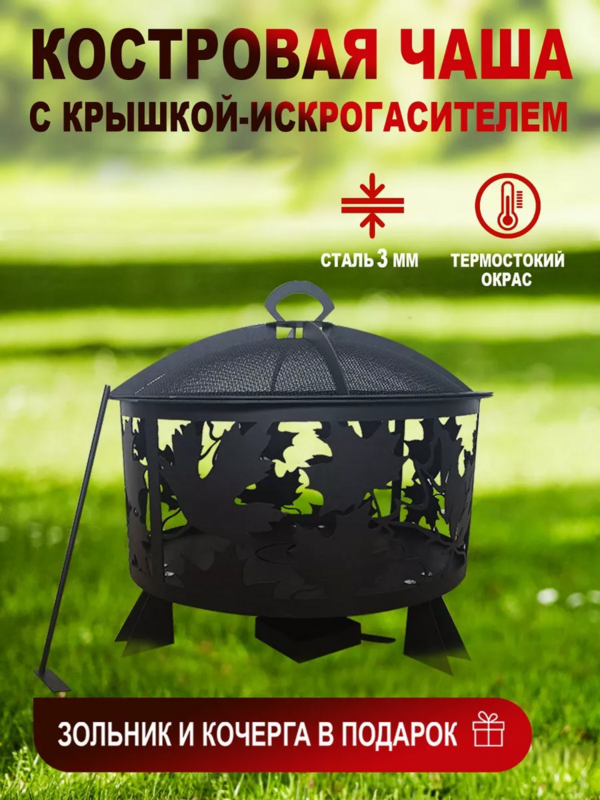 Костровая чаша с крышкой, очаг «Лист», 620*620*628, сталь 3 мм