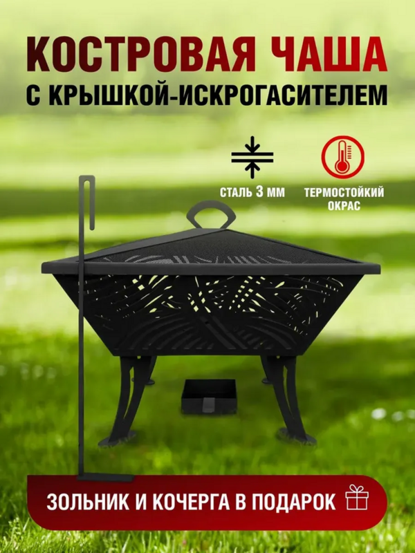 Костровая чаша, с крышкой очаг "Ромб" , 600*600*550, сталь 3 мм